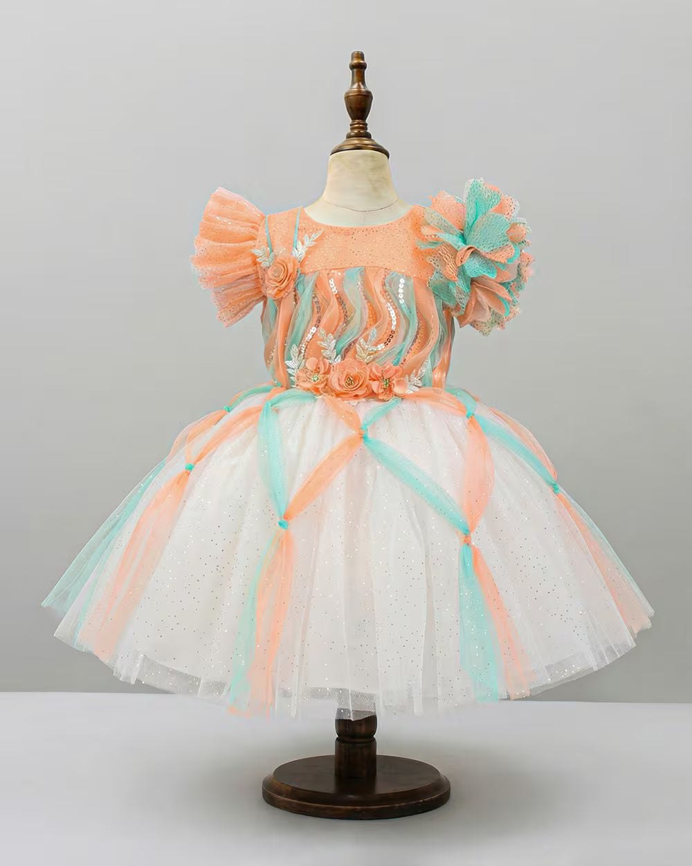 Pastel Princess Ballgown Tulle Birthday Frock with Flowers for Baby & Toddlers | Sana Clothing