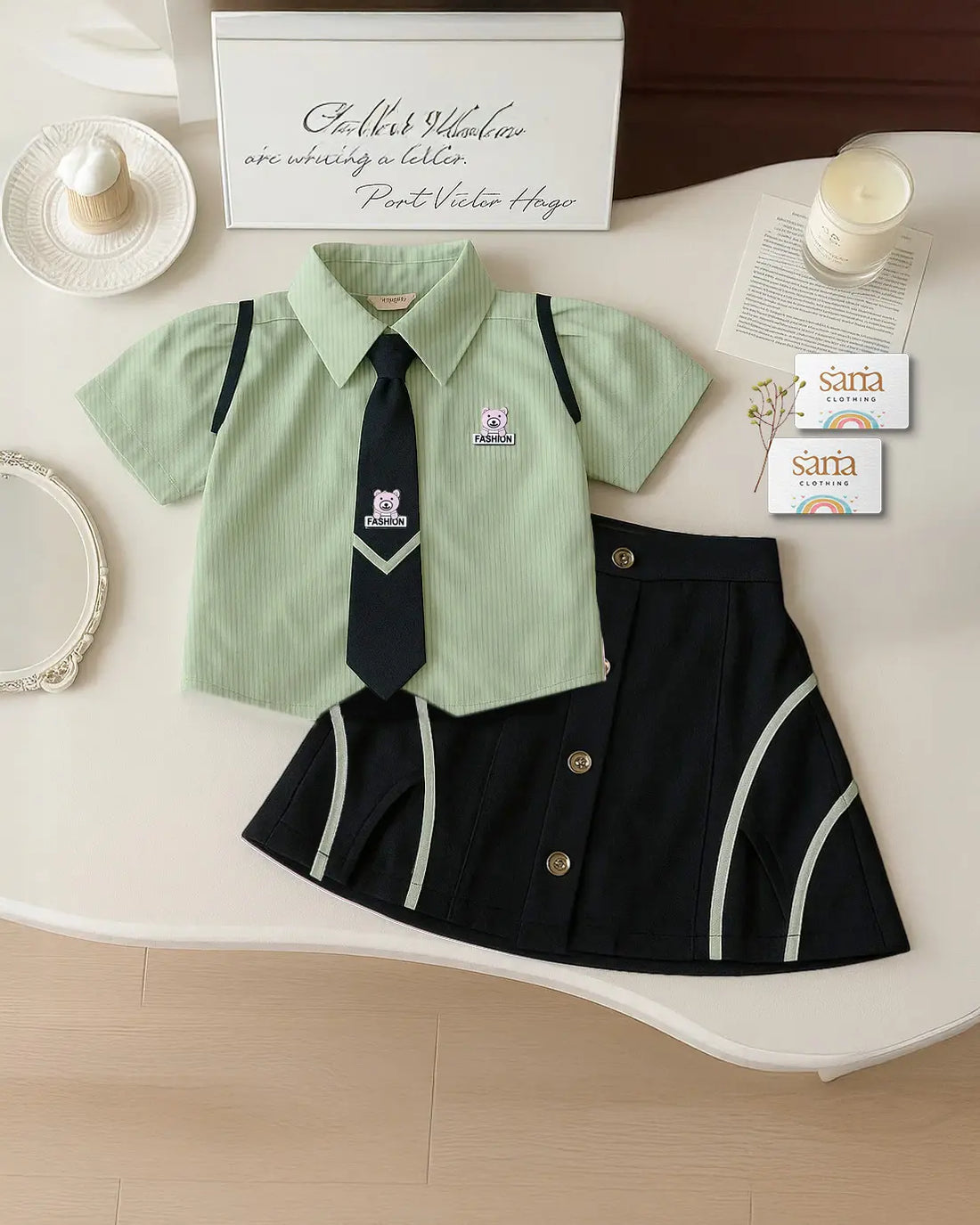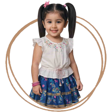 Girls Indo-Western Shirt & Skirt Set with Tie | Sana Clothing