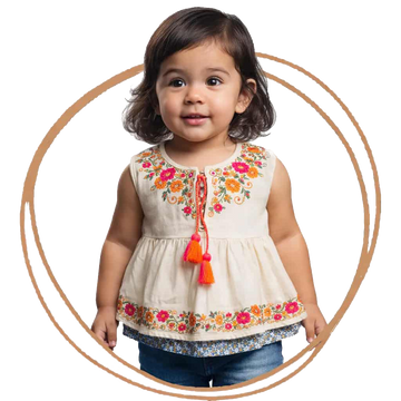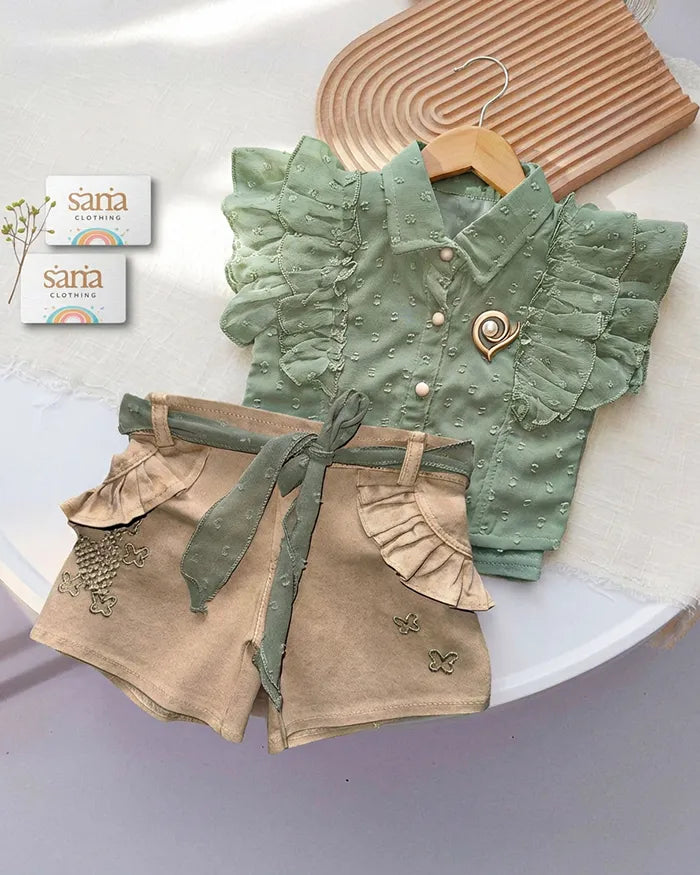 Ruffled Indo-Western Top & Butterfly Embroidered Shorts Set for Baby Girls | Sana Clothing