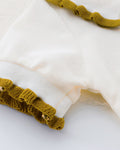 - Mustard ruffle trim detailing