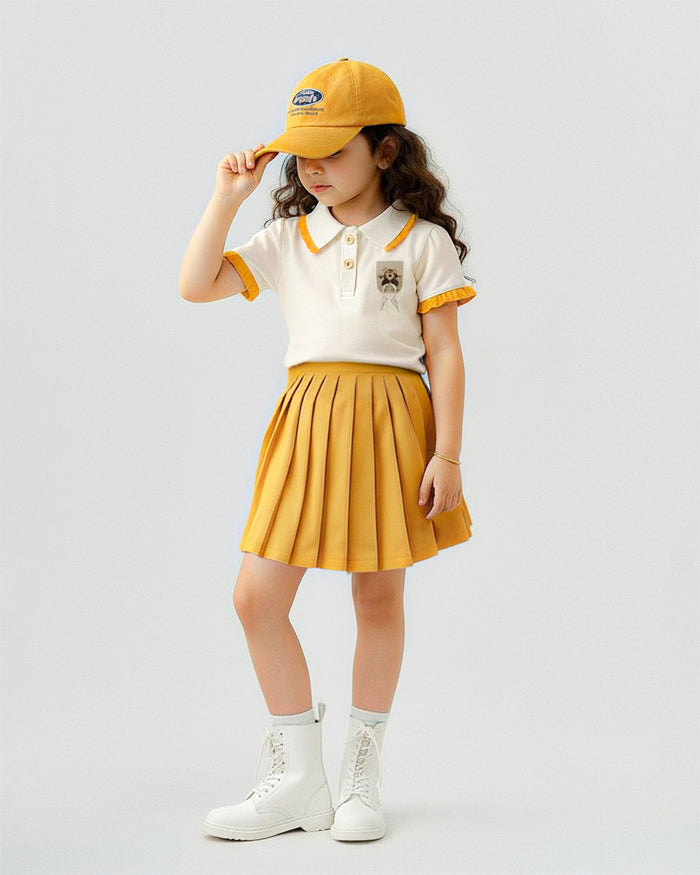 Polo Top & Pleated Skirt Set
