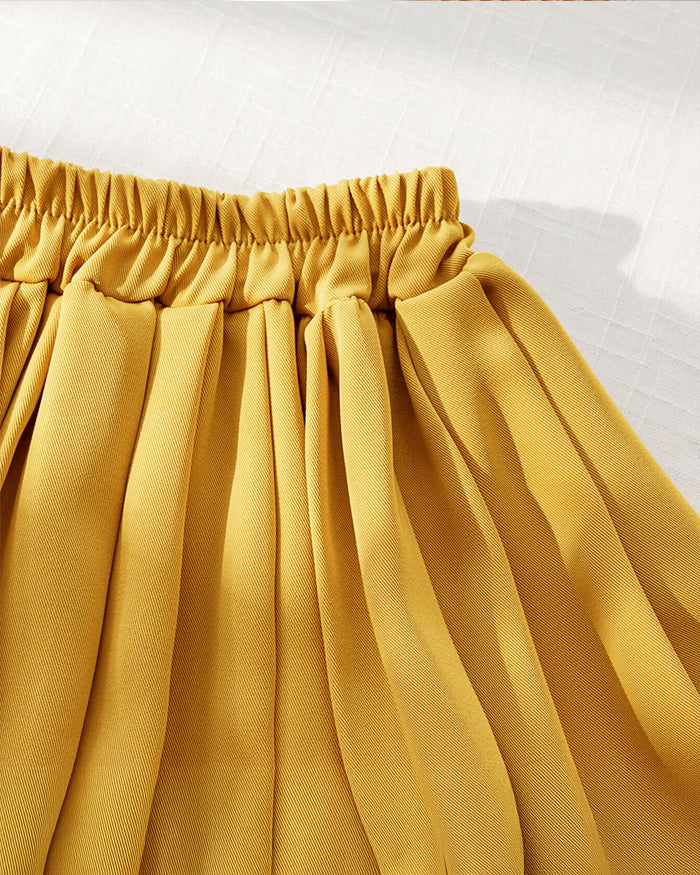 - Matching mustard pleated skirt
